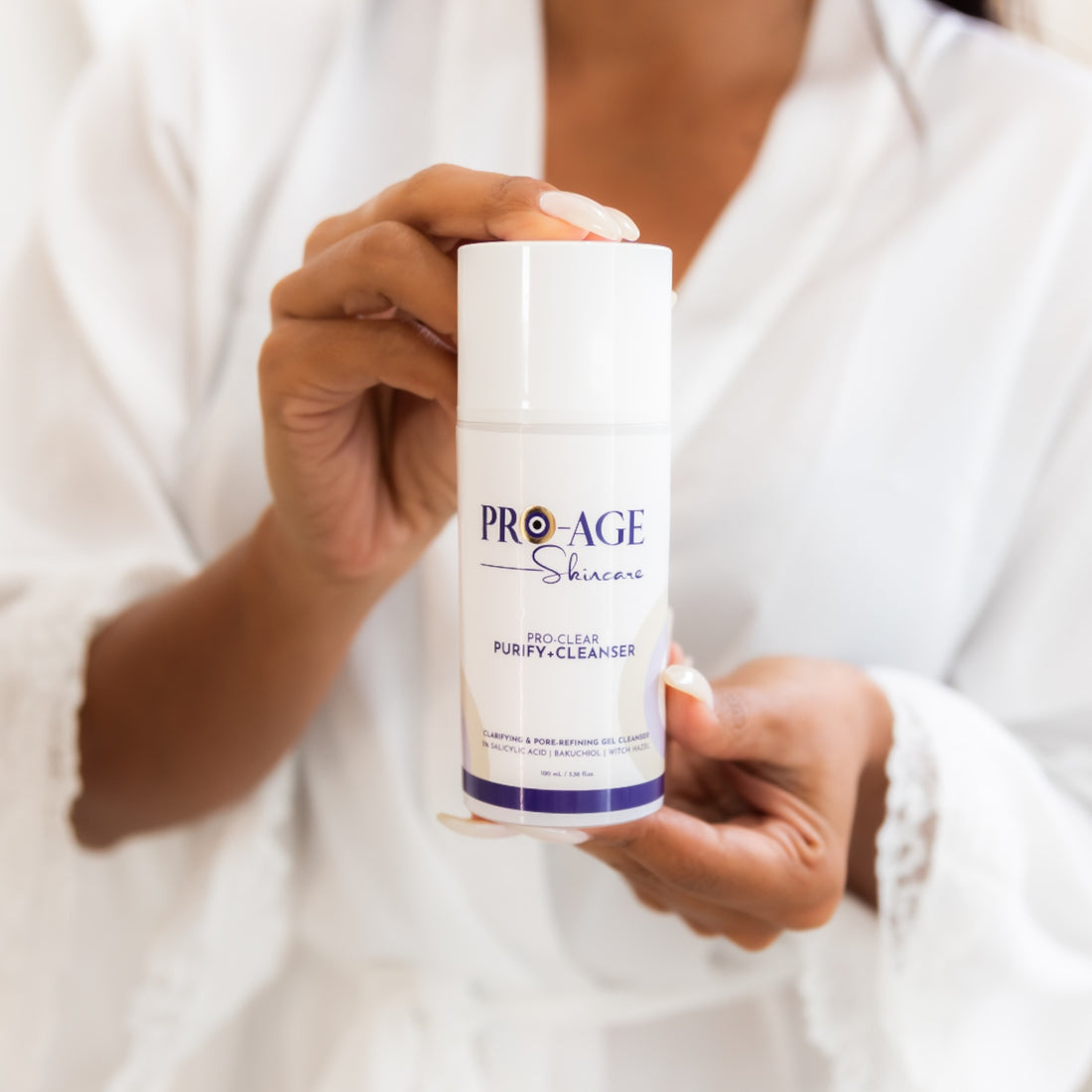 Pro-Age Skincare blends clean actives with biomimetic science to restore balance, brighten skin, and elevate your daily ritual — from surface to cellular level.