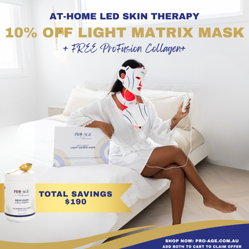 The Pro-Age Light Matrix Mask uses medical-grade LED wavelengths to rejuvenate skin, boost collagen, calm inflammation, and restore clarity — all from the comfort of home.